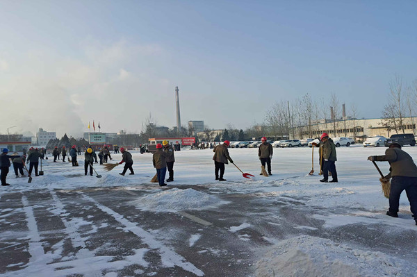 在除雪過(guò)程中,領(lǐng)導們始終與員工們并肩作戰,他們不僅是指揮者,更是參與者。當遇到積雪結冰難以清理時(shí),領(lǐng)導們與員工們共同商議對策,現場(chǎng)調配資源。他們親自上陣,與員工們一起喊著(zhù)口號,齊心協(xié)力將積雪堆攻克。