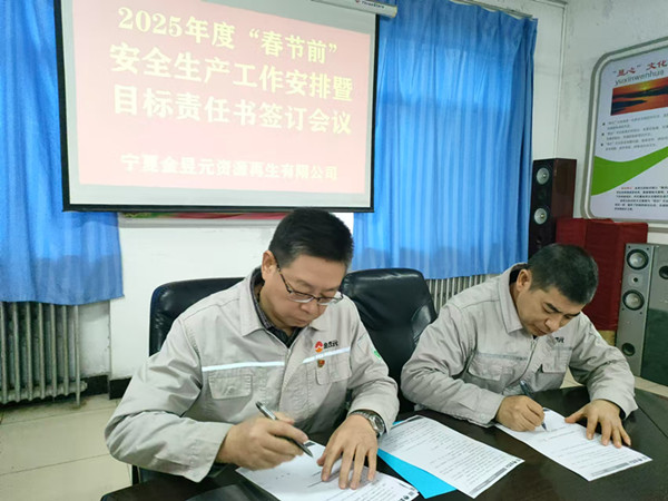 2025年1月23日,資源再生公司由總經(jīng)理組織,副總經(jīng)理、安全總監、支部書(shū)記、裝置長(cháng),職能科室相關(guān)人員、裝置技術(shù)人員參加,召開(kāi)2025年春節前安全生產(chǎn)工作安排暨目標責任簽訂會(huì )議。