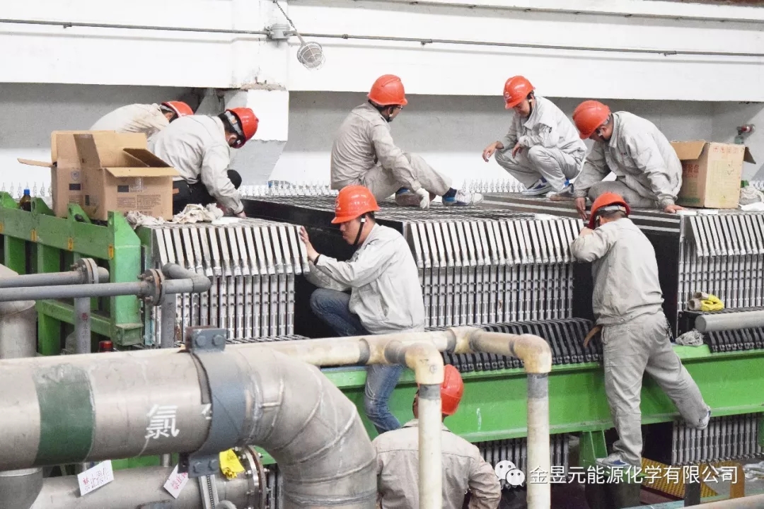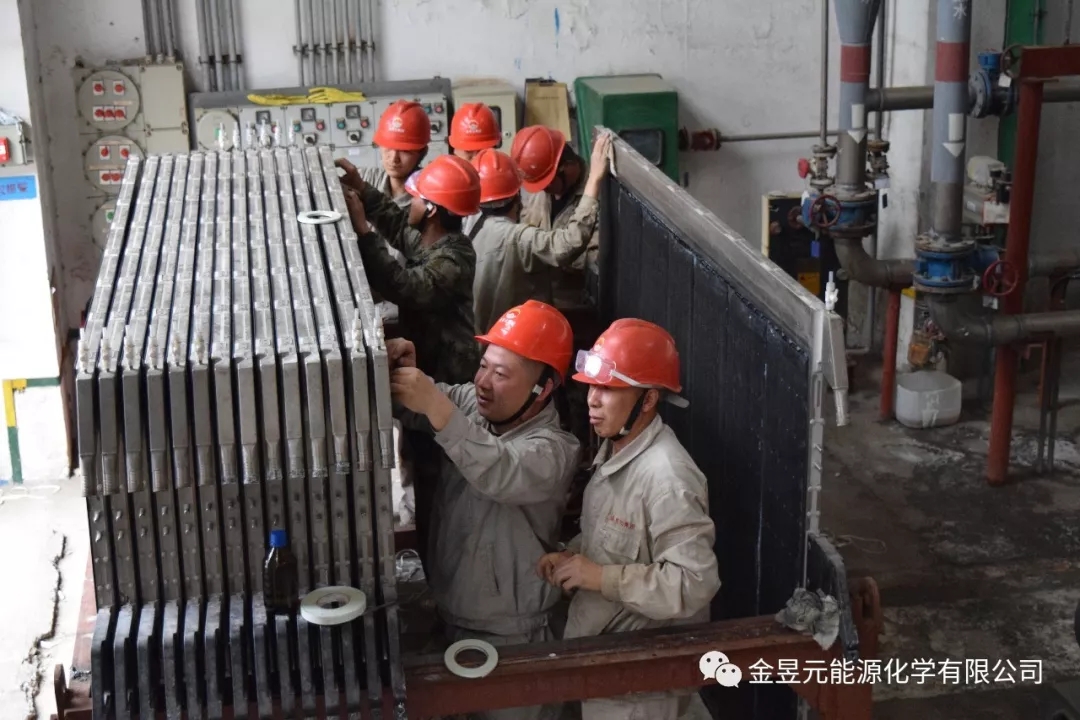離子膜裝置B槽檢修作業(yè)現場(chǎng),裝置將去年A槽檢修換膜總結的經(jīng)驗和方法充分運用到此次作業(yè)中,同時(shí)裝置檢修人員積極與廠(chǎng)家技術(shù)人員在鏟膠、貼膠、貼膜等作業(yè)方法和技術(shù)上進(jìn)行廣泛的交流學(xué)習,有效加快了檢修進(jìn)度。