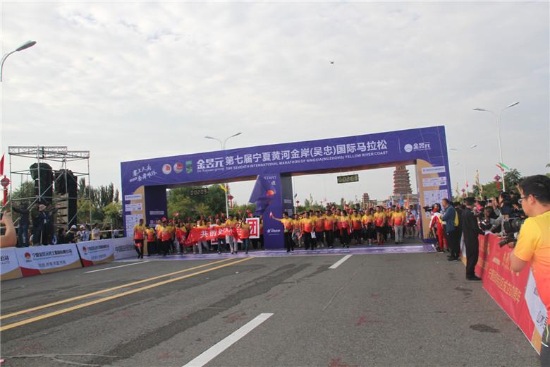 2018金昱元第七屆寧夏黃河金岸(吳忠)國際馬拉松在黃河奧林匹克公園開(kāi)跑。金昱元與寧馬在2017年首次進(jìn)行馬拉松賽事合作就建立了良好的合作基礎與友誼。2018年,金昱元再次攜手寧馬,成為本屆寧馬賽事的總冠名贊助商。