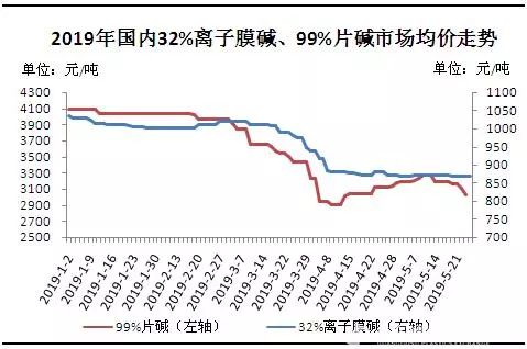 需求減少疊加現貨庫存壓力,燒堿價(jià)格再次陷入下跌走勢。5月下旬西北片堿廠(chǎng)家大幅下調出廠(chǎng)報價(jià),從市場(chǎng)人士了解,最低出廠(chǎng)價(jià)已經(jīng)跌到2000元/噸,業(yè)者心態(tài)悲觀(guān),部分地區甚至呈現有價(jià)無(wú)市的狀態(tài)。