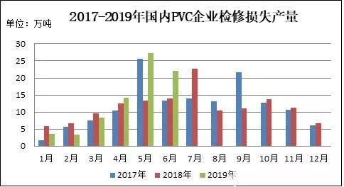 圖2 2017-2019年國內PVC企業(yè)檢修損失產(chǎn)量