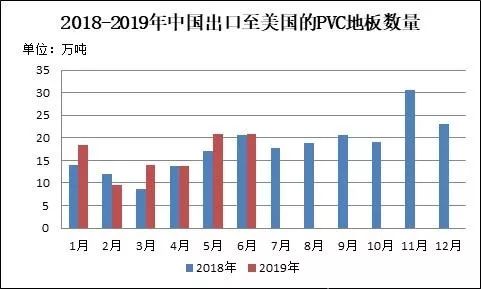 圖10 2018-2019年中國出口至美國的PVC地板數量