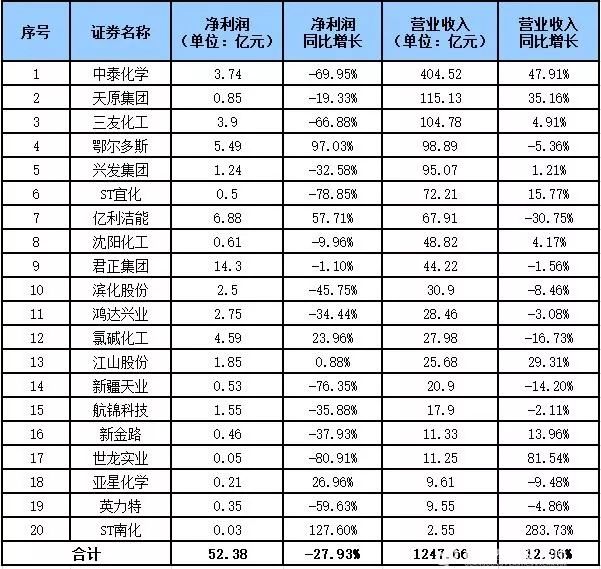 上市公司2019年度的半年報已披露完畢。廣東塑料交易所統計了新疆天業(yè)、中泰化學(xué)、英力特、鴻達興業(yè)等20家氯堿行業(yè)上市公司上半年的業(yè)績(jì)情況,合計實(shí)現營(yíng)收1247.66億元,同比增長(cháng)12.96%,凈利潤52.38億元,同比下降27.93%;雖然利潤出現下滑,但上半年這20家上市公司全部實(shí)現盈利。