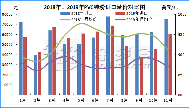 3.1 2019年聚氯乙烯PVC進(jìn)口量?jì)r(jià)分析