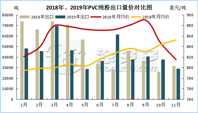 3.2 2019年聚氯乙烯PVC出口量?jì)r(jià)分析