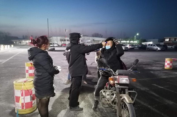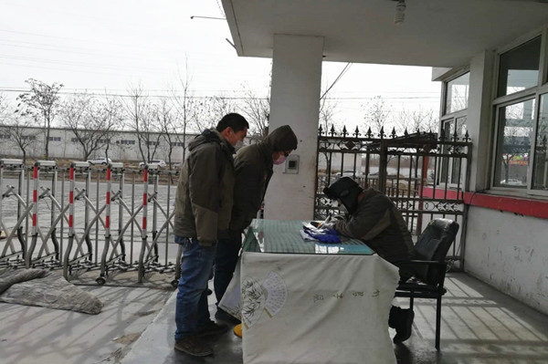 2月13日,氣溫驟降,在片區北大門(mén)新增檢測點(diǎn),由于值班室是移動(dòng)房,沒(méi)有暖氣,劉聰俊和侯進(jìn)在晚上頂著(zhù)寒冷值班。盡管天氣嚴寒,但他們依然堅守崗位,一絲不茍地對通行人員進(jìn)行體溫測量和信息登記,嚴把疫情防控關(guān)。和他們一樣,所有檢測點(diǎn)的保衛科人員都默默無(wú)聞地與疫情防控和嚴寒做著(zhù)斗爭。