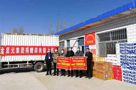 16日上午,春寒料峭,集團公司黨委副書(shū)記兼工會(huì )主席王立軍、工會(huì )副主席李新、集團公司辦公室主任朱公平等將10萬(wàn)元捐款和價(jià)值1萬(wàn)元物資捐贈給邵崗鎮政府時(shí),青銅峽市副市長(cháng)張克寧、邵崗鎮鎮長(cháng)梁才等同志向金昱元集團表示感謝。