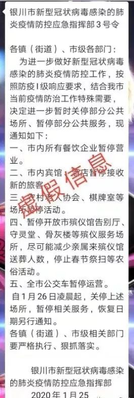 1月25日,秦某芳(女,70歲,銀川市興慶區居民)在一微信群內發(fā)布“銀川市新型冠狀病毒感染的肺炎疫情防控應急指揮部3號令”的虛假消息,造成不良影響,興慶區公安分局已對秦某芳進(jìn)行批評教育。