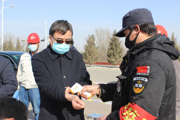 朱洪軍一行在疫情防控檢測點(diǎn)按檢測程序測量體溫、登記信息,詳細查看了疫情防控登記臺賬并到工作現場(chǎng)檢查。經(jīng)過(guò)細致檢查,對固原片區疫情防控工作給予了充分肯定。