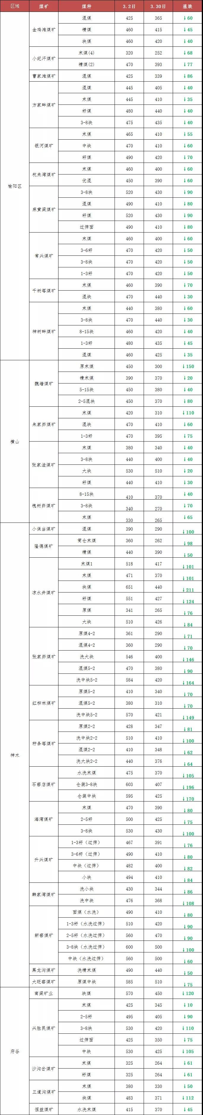▏倒工作面煤礦:創(chuàng )威煤礦、崔家溝煤礦、石巖溝煤礦 狼窩渠煤礦:接領(lǐng)導通知,3月30日、31日兩天綜采正常生產(chǎn)出煤,31日晚上井下停止開(kāi)始全面清掃井下衛生。 近日,榆林煤價(jià)持續下跌,且有繼續下跌的可能。有客戶(hù)向榆林煤炭交易中心反映,最近下游終端用戶(hù)壓價(jià)幅度較狠,個(gè)別用戶(hù)壓價(jià)幅度達到90元/噸左右。 下游如此壓價(jià),這無(wú)疑是倒逼產(chǎn)地煤礦繼續降價(jià)。 據榆林煤炭交易中心了解,從3月初到現在,榆林許多煤礦降幅超100元/噸,個(gè)別煤礦降幅甚至快接近200元/噸。雖然煤價(jià)一直下跌,但據業(yè)內人士分析,目前煤價(jià)還未探底,仍有幾十元的下降空間。