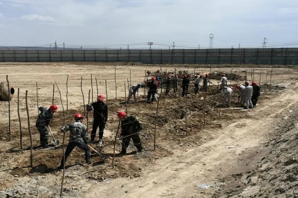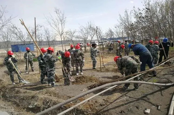 參加植樹(shù)的職工一到植樹(shù)現場(chǎng),便投入到忙碌的工作當中,大家爭先恐后揮鍬挖土、放苗回填,現場(chǎng)一片繁忙景象。