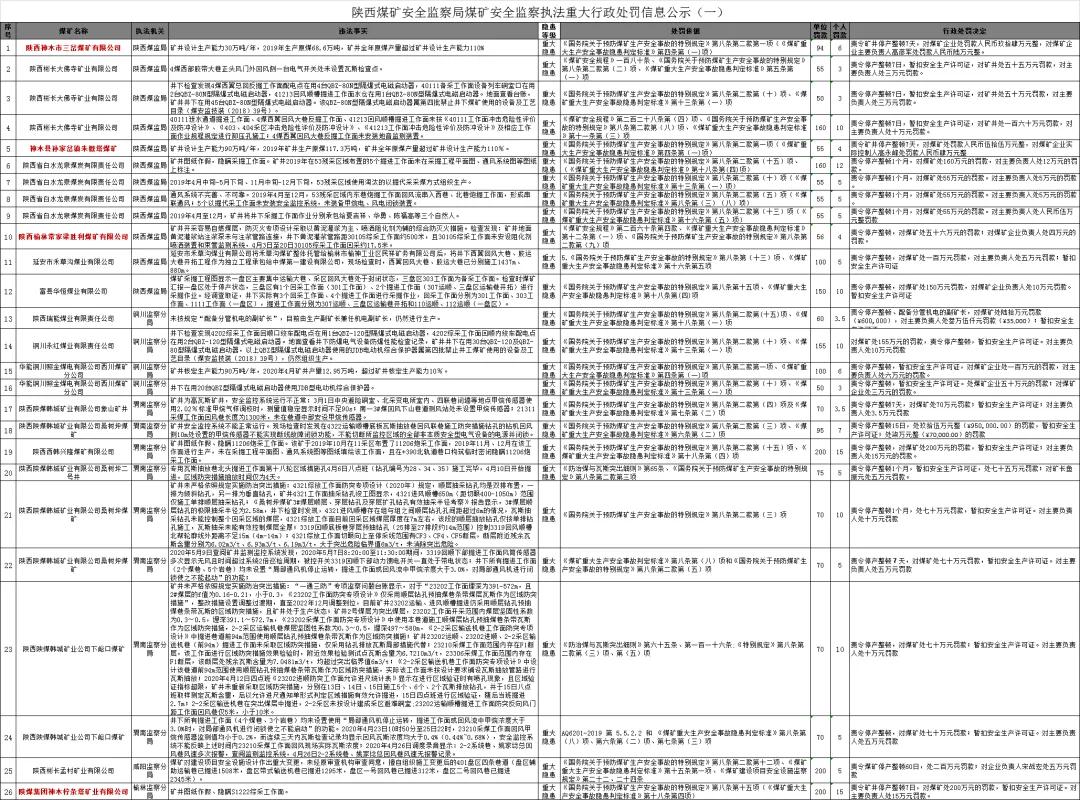 6月10日,陜西煤礦安全監察局官網(wǎng)發(fā)布了《關(guān)于2020年煤礦安全監察執法重大行政處罰信息公示(一)》。