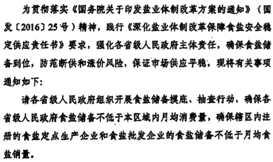 國務(wù)院《鹽業(yè)體制改革方案》規定: