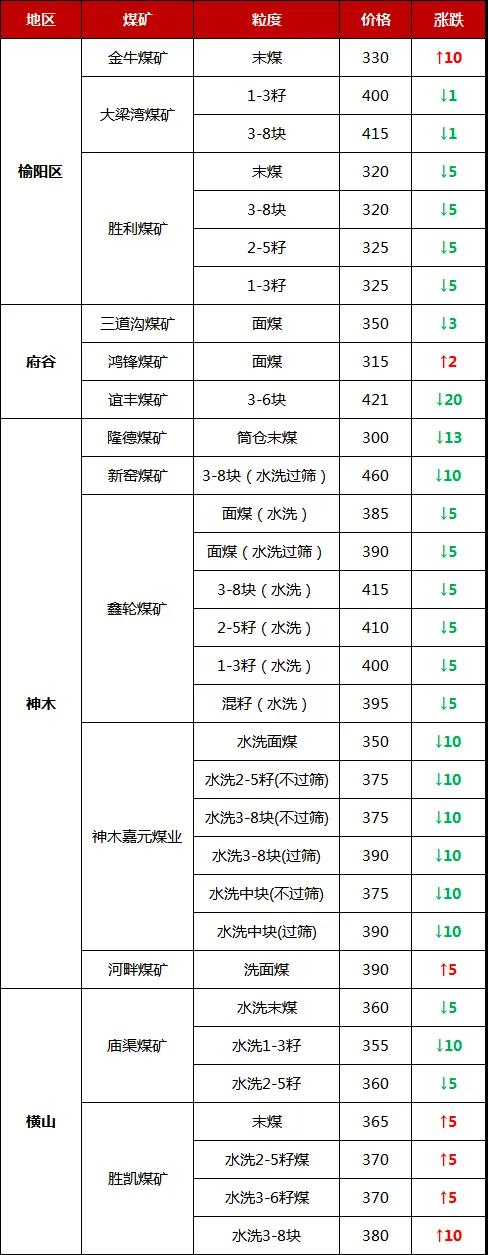 今日調整價(jià)格的煤礦有: