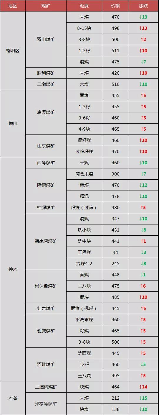 最新調價(jià)煤礦: