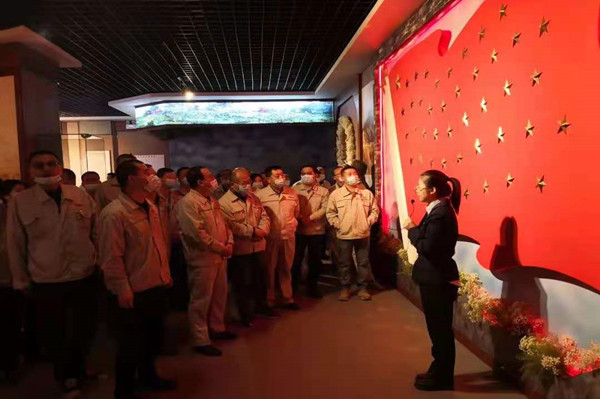 活動(dòng)結束前,大家聚集在黨旗下,鄭重公諾,表示要以昂揚的姿態(tài)奮進(jìn)“十四五”、奮進(jìn)新征程,爭當排頭兵,干在先,走在前;要不忘初心、牢記使命,繼承先輩遺志,讓紅色基因代代相傳,表達對革命先烈的感恩與敬仰。