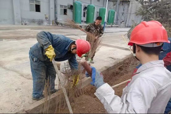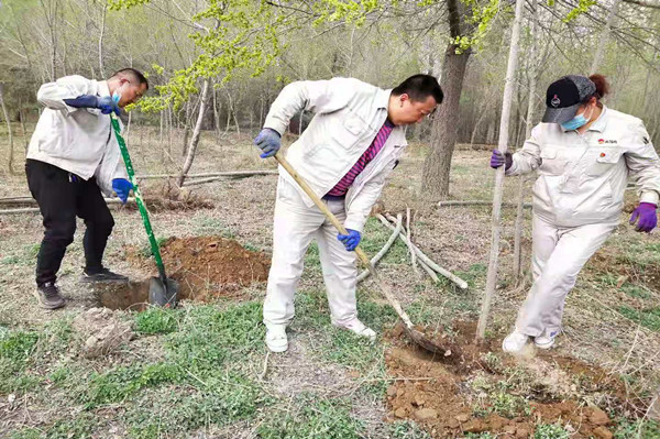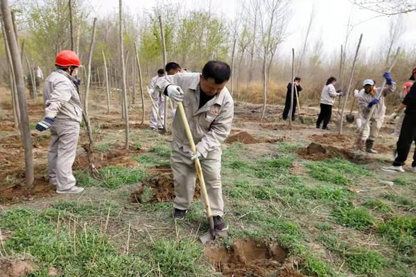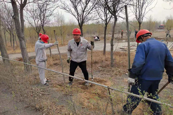 參加植樹(shù)的職工一到現場(chǎng),便投入到火熱的工作中。大家或揮鍬挖坑,或扶苗培土,或提桶澆水,所有人齊心協(xié)力、相互配合,現場(chǎng)一片繁忙景象。