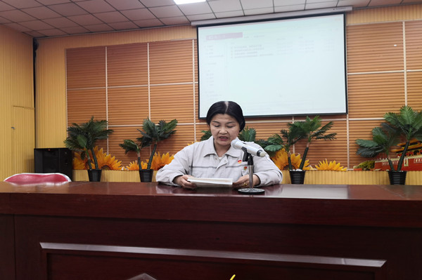金昱元集團公司全國勞動(dòng)模范趙銀紅宣講了個(gè)人先進(jìn)事跡。