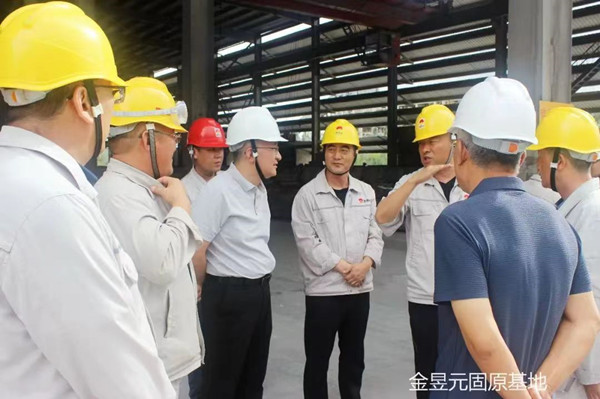 2022年7月14日下午,自治區防汛抗旱指揮部固原市督查組組長(cháng)、自然資源廳副廳長(cháng)呂世民,水利廳調研員郭文峰,自然資源廳王樹(shù)軍、萬(wàn)學(xué)瑞、扈志勇一行,在固原市政府副秘書(shū)長(cháng)徐虎,應急管理局、自然資源局、稅務(wù)局相關(guān)負責人的陪同下,蒞臨寧夏金昱元化工集團股份有限公司固原片區調研,集團公司副總裁、片區總經(jīng)理王立軍,副總經(jīng)理馬建東、湯洪冰、賈存富陪同。