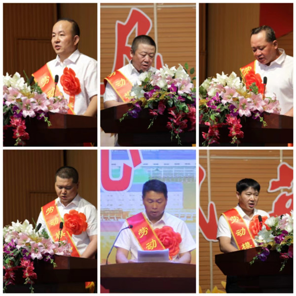 作報告的勞動(dòng)模范。自上而下、自左至右,依次為:陶新明、楊曉峰、鄧麗軍、王佳、張建忠、劉華