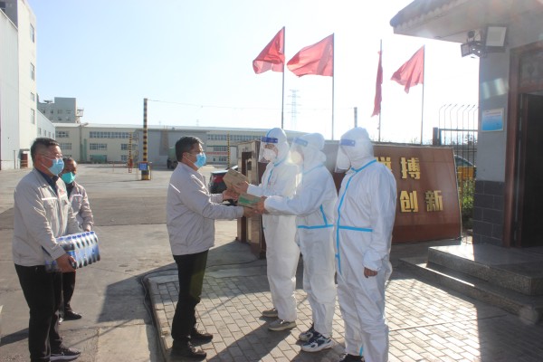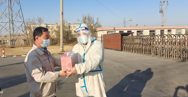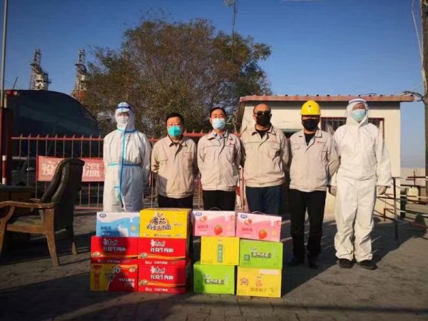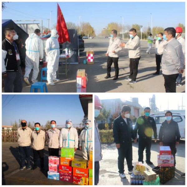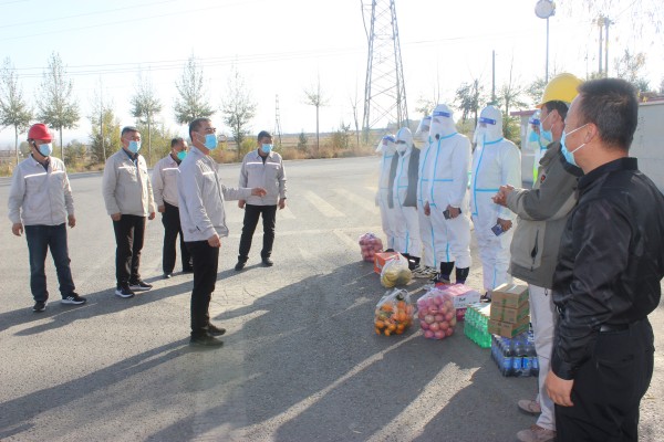 為提振士氣、鼓舞斗志,堅決打贏(yíng)疫情防控阻擊戰,10月31日、11月1日,寧夏金昱元化工集團股份有限公司總裁喬冠榮,監事會(huì )主席郭復生,黨委副書(shū)記尚興,副總裁、固原片區總經(jīng)理王立軍,副總裁、青銅峽片區總經(jīng)理張立軍等領(lǐng)導組成慰問(wèn)組,分別到固原片區和青銅峽片區各疫情防控卡點(diǎn)慰問(wèn)奮戰在一線(xiàn)的防疫人員。