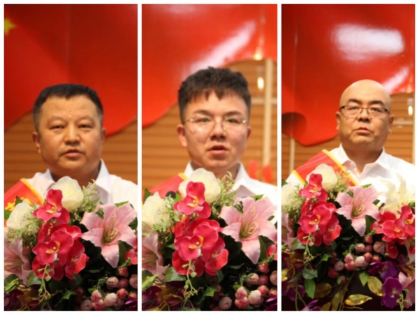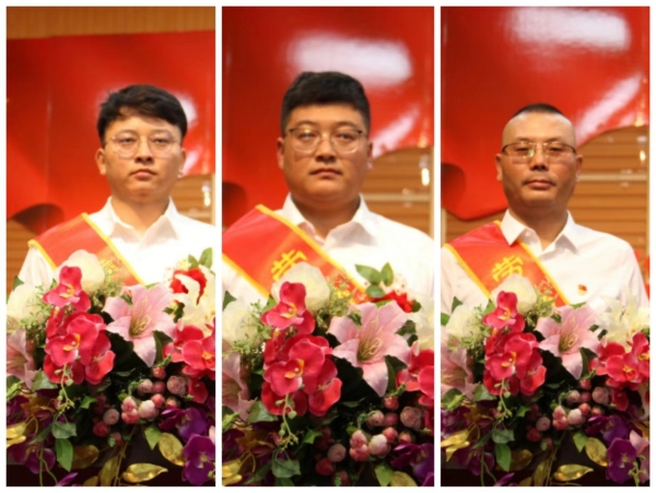 勞動(dòng)模范:左:資源循環(huán)公司 席文童;中:廣拓能源公司 麻玉龍;右:炔烴節能公司 金學(xué)鋒