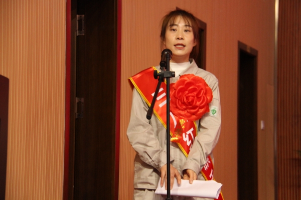 女職工代表楊芙蓉發(fā)言。她向集團公司對廣大女職工們的關(guān)愛(ài)表示衷心的感謝,為企業(yè)給她們提供實(shí)現自身價(jià)值的廣闊平臺表示誠摯的謝意。她號召全體女職工共同努力,勇挑重擔、務(wù)實(shí)苦干,為開(kāi)創(chuàng )金昱元更加輝煌燦爛的明天踔厲奮發(fā)、不斷前行。