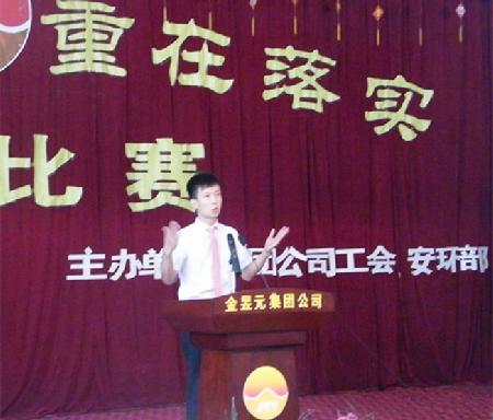 為進(jìn)一步落實(shí)企業(yè)安全生產(chǎn)主體責任,繼續推動(dòng)公司“安全生產(chǎn)年”活動(dòng)的深入開(kāi)展,6月30日,寧夏金昱元化工集團公司工會(huì )、團委、安全環(huán)保部聯(lián)合舉辦了以“安全責任,重在落實(shí)”為主題的安全知識演講比賽。公司領(lǐng)導及員工代表300余人觀(guān)看了比賽。