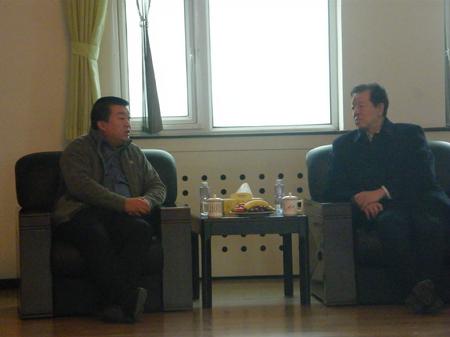 自治區國稅局副局長(cháng)陳連書(shū)(右)與金昱元公司董事長(cháng)代良云(左)親切交談